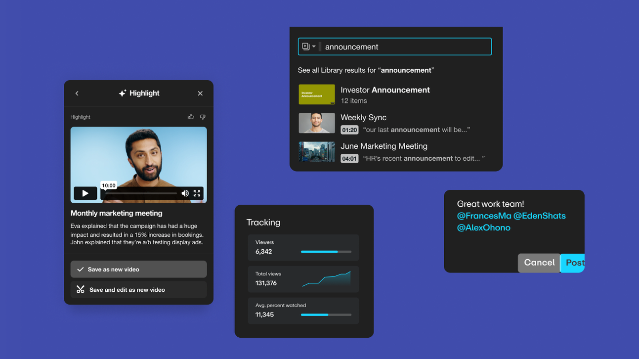 The fragmentation of video content across all our tools has made it more difficult for employees to find and parse what they actually need while preventing leaders from having control and visibility over their content. As a result, the workforce and, ultimately, business performance continue to be impacted by low productivity as well as poor employee engagement and collaboration.
