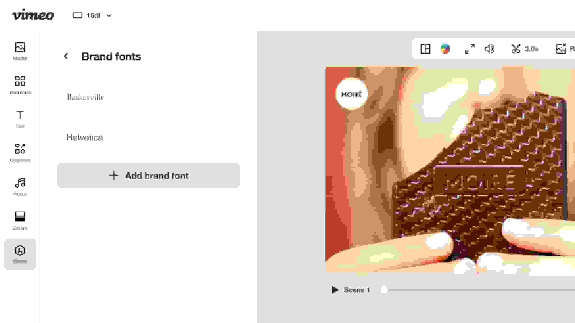 Yes – with the help of the Text Inspector toolbar, which will appear above the preview when you select a textbox on your video. Once you’ve selected your brand’s custom font, you can select its size, change text color, fill color, highlight color, drop shadows, and even animation.