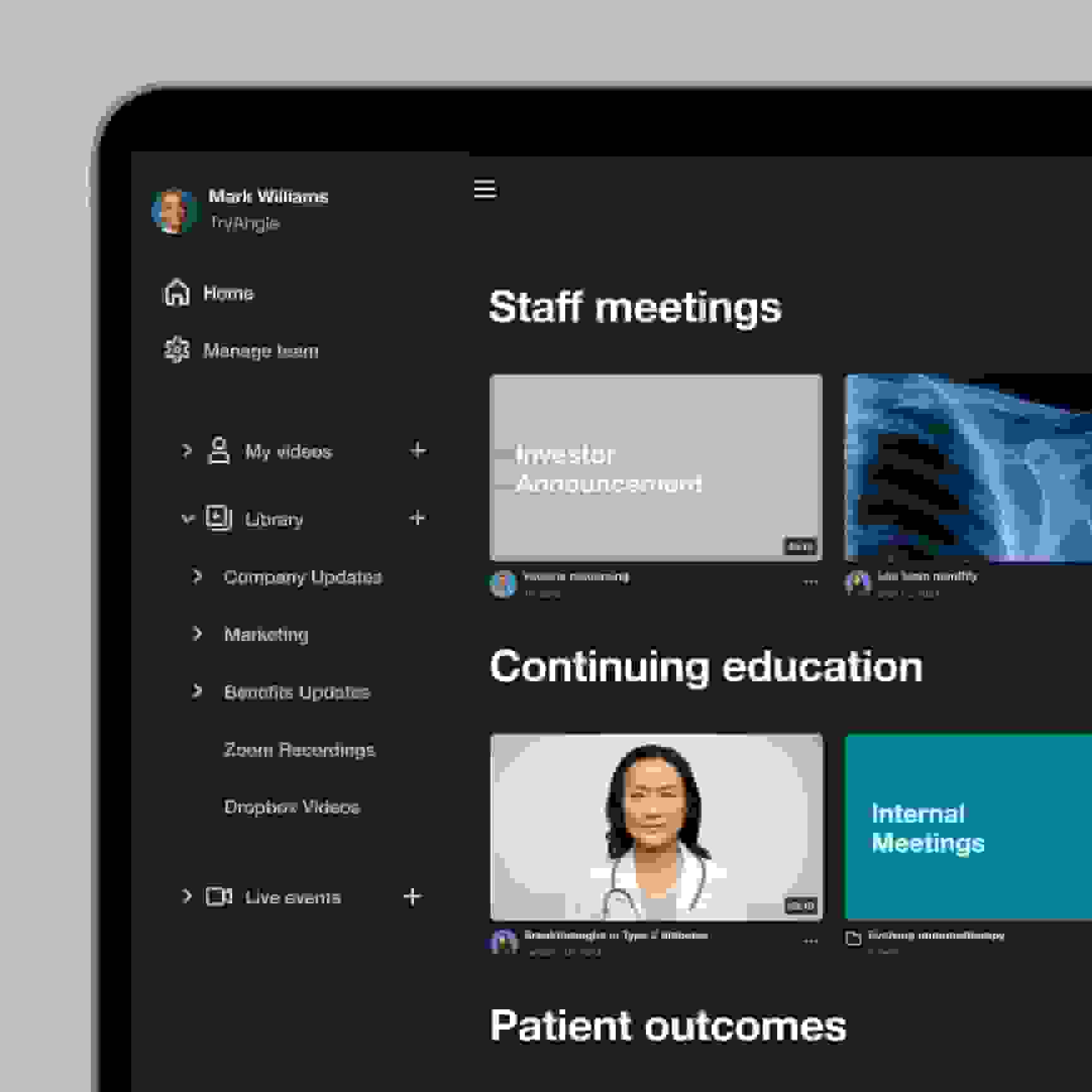 O Vimeo ajuda você a informar os pacientes, se conectar com sua equipe e promover sua organização, tudo seguindo as práticas recomendadas de privacidade e confidencialidade.